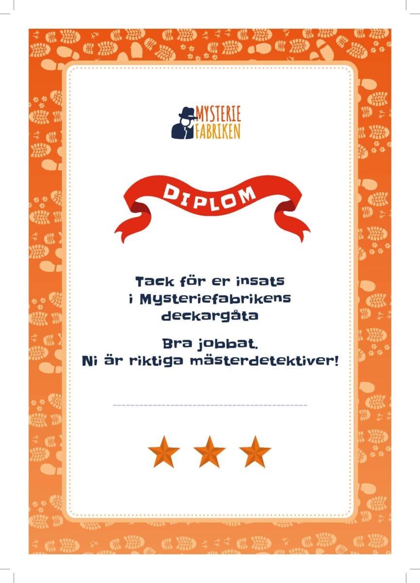 Mysteriefabrikens deckargåtor är både kluriga och roliga för såväl stora som små. Deckargåtorna passar perfekt för mysiga hemmakvällar med familjen eller som en lek med kompisar. De är också väldigt roliga att använda på barnkalas.